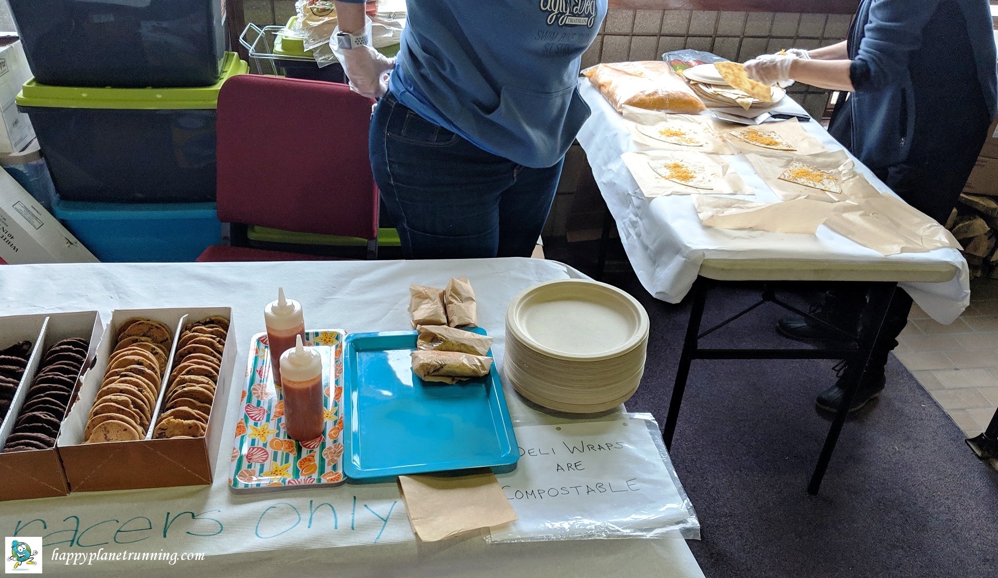 Previous Image Next Image frosty freestyle 2019 – food table Food table. Note the plain paper table covers and compostable plates and deli wraps for the burritos.
