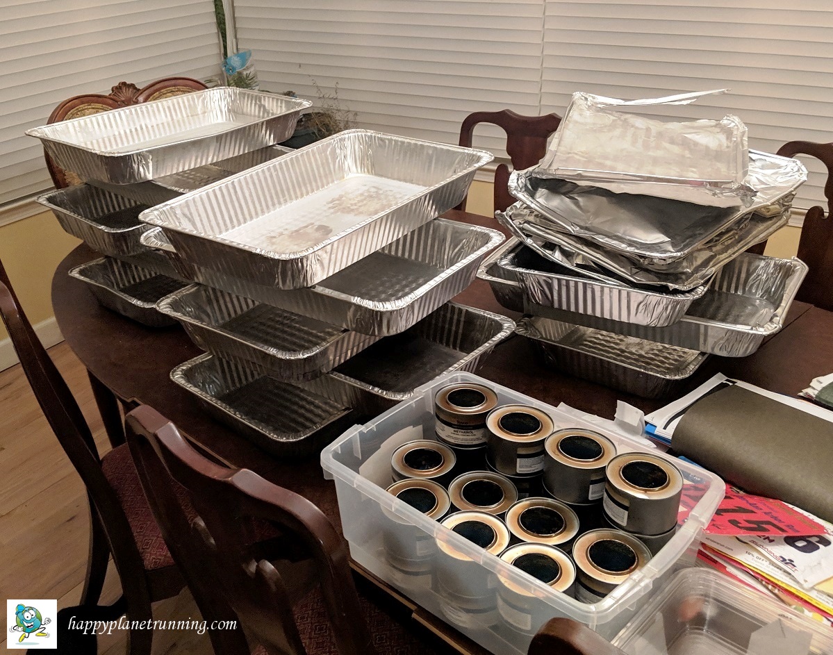 The Sterno cans can be recycled after the fuel residue is cleaned out. The pans are either recycled or donated to the local Humane Society, who wants them.