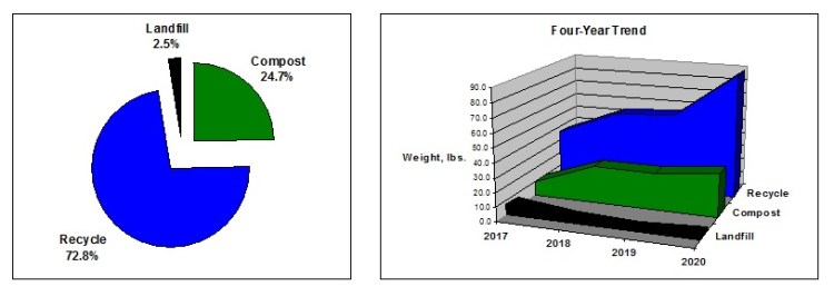 Compostables: 30.2 lbs. Recyclables: 88.9 lbs. Landfill: 3 lbs. (est.)