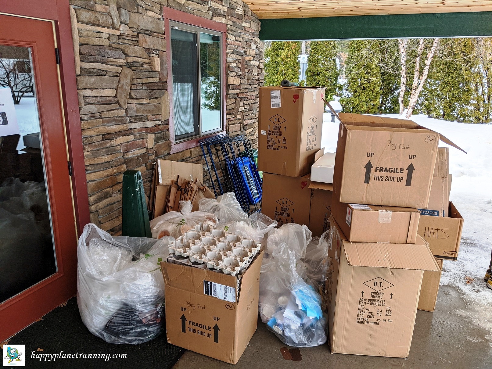 Recycling increases were due to additional cardboard and Styrofoam (used in trophy boxes). Main contributors to landfill trash were Gu and GoGo SqueeZ packets, which we’d intended to save for TerraCycle, but got misplaced somehow and must have ended up in a trash basket.