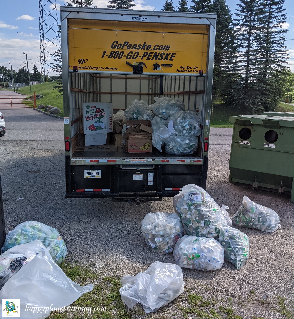 Challenges included people using existing City trash cans. We covered the big ones, but a couple escaped notice at first and were cleaned out and sorted. And, as usual, the aid station bags had to be carefully sorted to remove Gu packets and other contaminants from the bottles and cups.