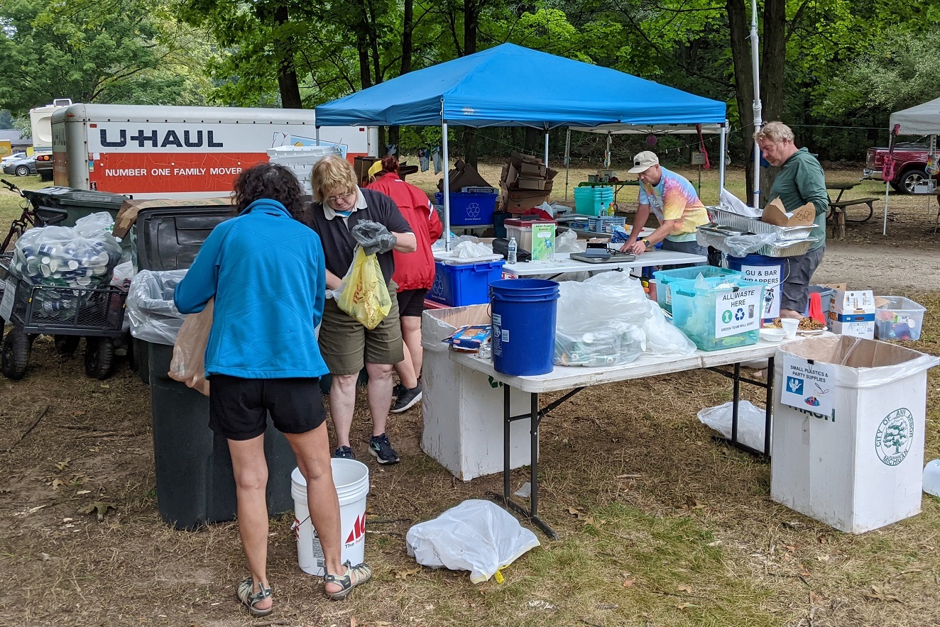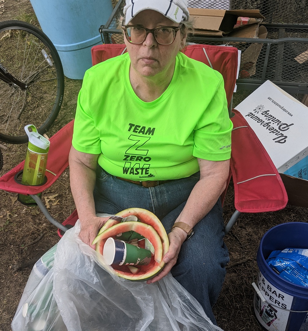 We set up the Ground Zero station in the same spot as last year, near the main pavilion and next to the path the runners use. Learning from the 2021 experience, I made a couple of changes to the Zero Waste plan.