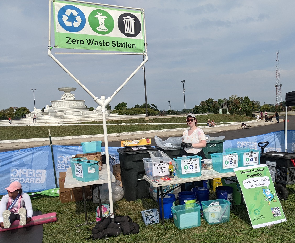 This year the food and vendors set up on a grassy area next to the big fountain, and the races started and ended on the road circling the fountain. It was a good setup that managed the post-race flow well, never seeming too crowded or too empty. The kitchen area got two All Waste boxes, and with regular checking the waste stayed under control there.