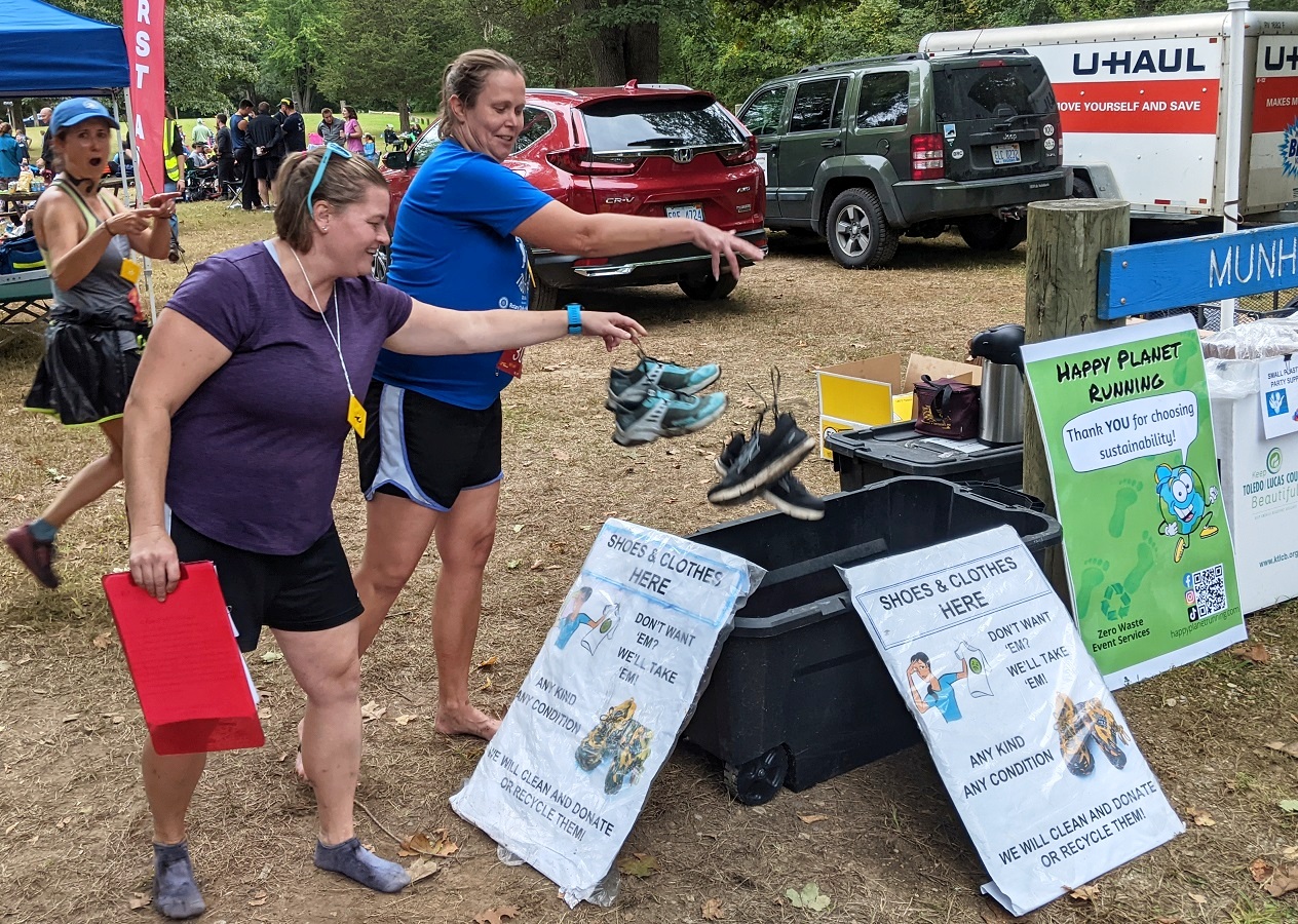Shoe collection this year was 18 pairs, down from 45 in 2021. They will go to Got Sneakers for resale or recycling. We also collected some shirts, socks, two Run Woodstock 100-mile hoodies, and a nice North Face jacket.