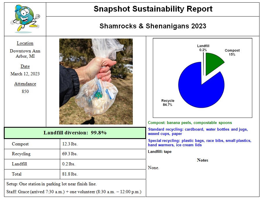 Another year, another Shamrocks & Shenanigans 5K on a blustery day. But people showed up to run, so the Zero Waste team was there to pick up after them.
