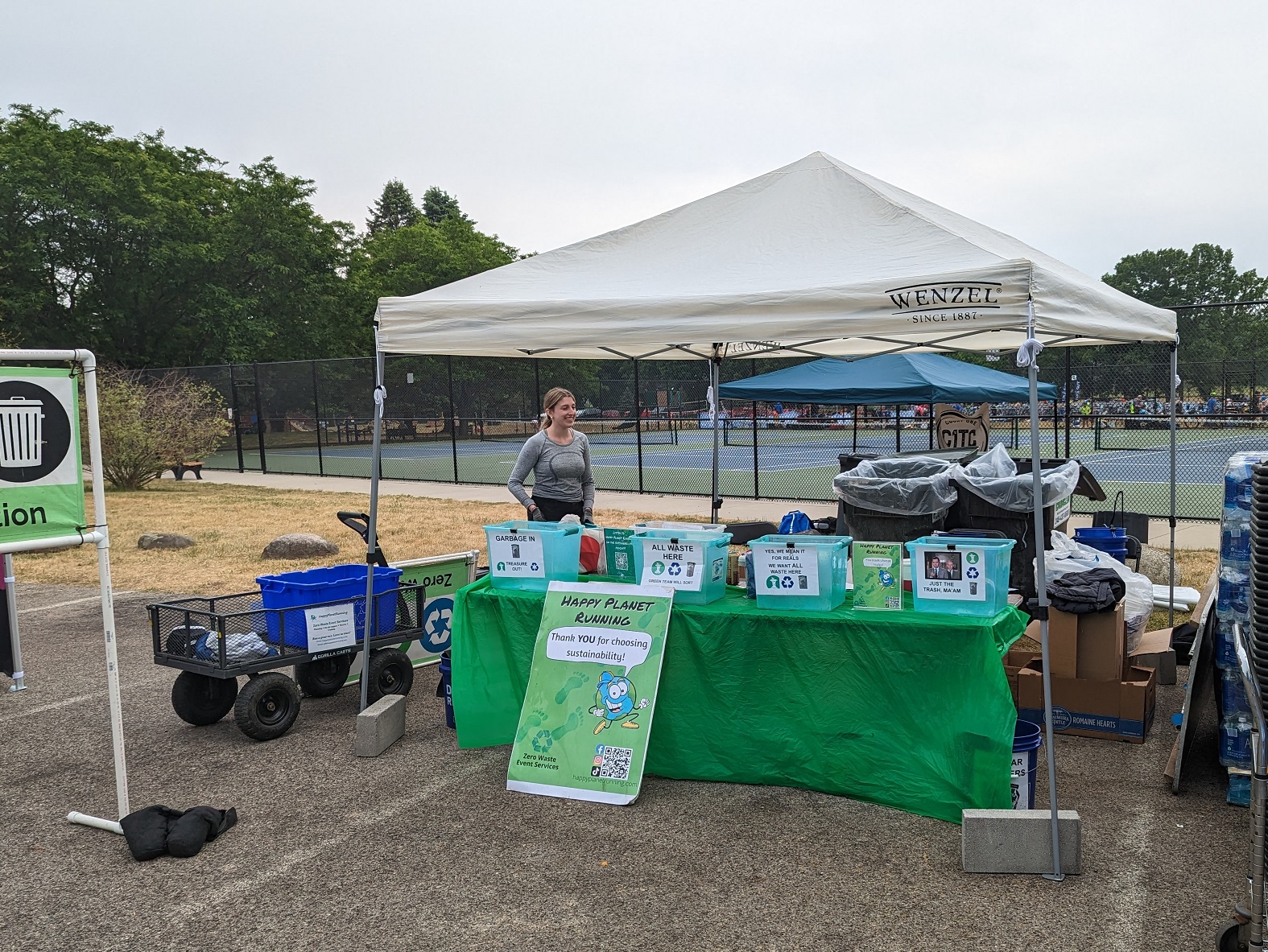 Tris4Health set up the main Zero Waste station for us (thanks!) between the food tables and the beer tent. We put All Waste boxes in the beer tent and on top of a park trash can in the finish area, which we swapped out when full. We also gave one to the VIP table, which provided extra food and assistance to sponsors and charity partners.