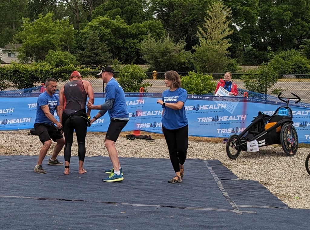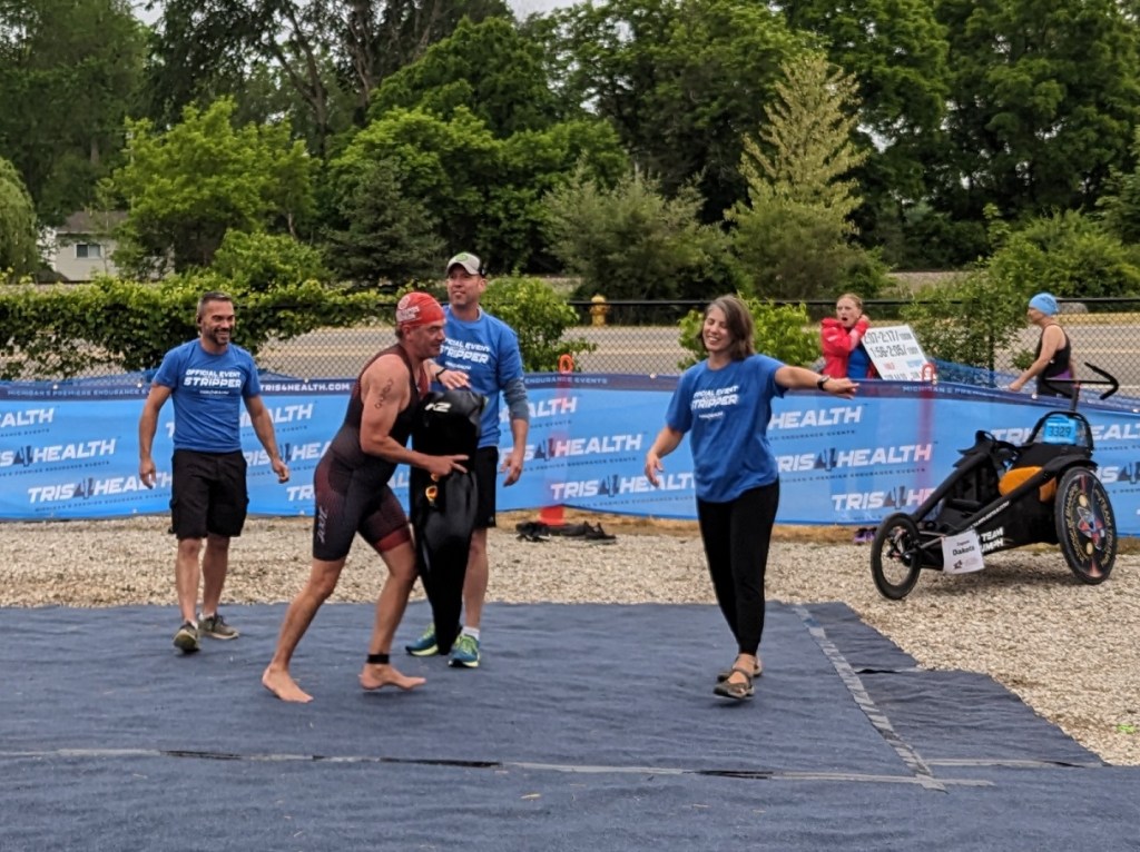 HPR is thrilled to announce we have picked up several events in the Grand Rapids area, and we kicked off our season there with the Tris4Health Grand Rapids Triathlon in Ada! The event covered two days, with a sprint and super sprint on Saturday, and the Olympic and 70.3 (half Ironman) distances on Sunday. One neat feature was a team of “strippers” who helped the athletes off with their wetsuits. (I will leave it to the reader to figure out any connection between this and Zero Waste.)