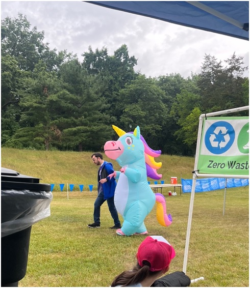 I had one volunteer, Angela, and another HPR intern, Emma! Our team did an amazing job sorting everything out with almost everything being compostable and recyclable. Landfill for this race was soiled plastics and foil, nonrecyclable waxed paper for ice cream sandwiches, and tape. Salad dressing unfortunately contaminated some plastic wrap we could have otherwise recycled.