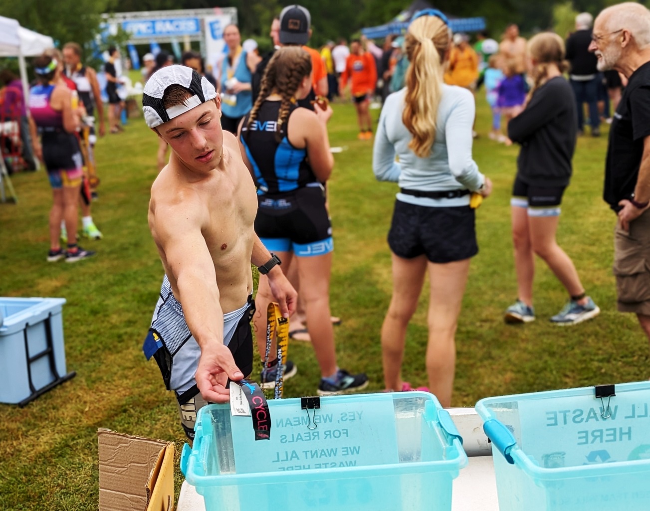 We set up the main Zero Waste Station near food and beer tents. Additional All Waste boxes were placed at the transition exit, food prep area, and on top of a trash can in the parking lot.