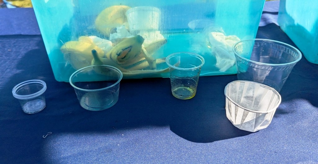 Another headache arose when the vineyard ran out of compostable cups and started using plastic ones. Yikes! Now we had to very carefully check each cup to know how to handle it, as the two streams cannot mix.