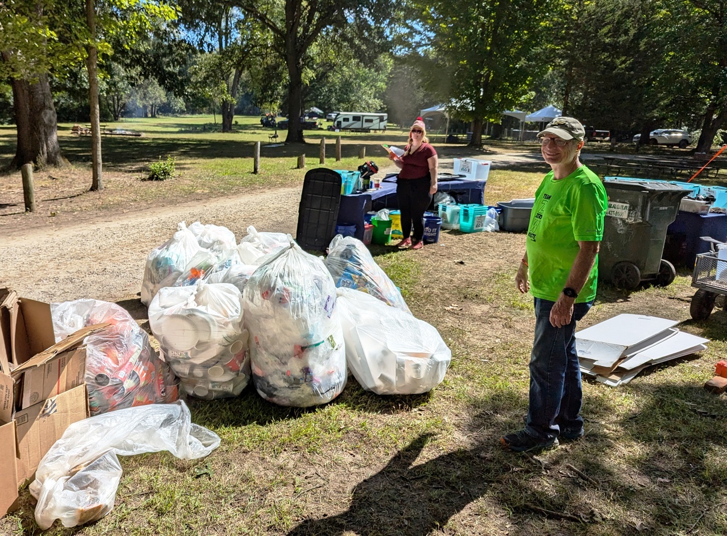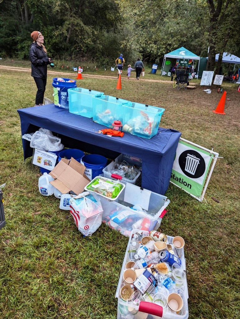 - The pavilion and finish line/awards area brought their waste to Ground Zero and swapped out boxes as needed, reducing the need for us to patrol those areas. This was great because we were sorting pretty much nonstop all day Saturday, and Sunday morning.