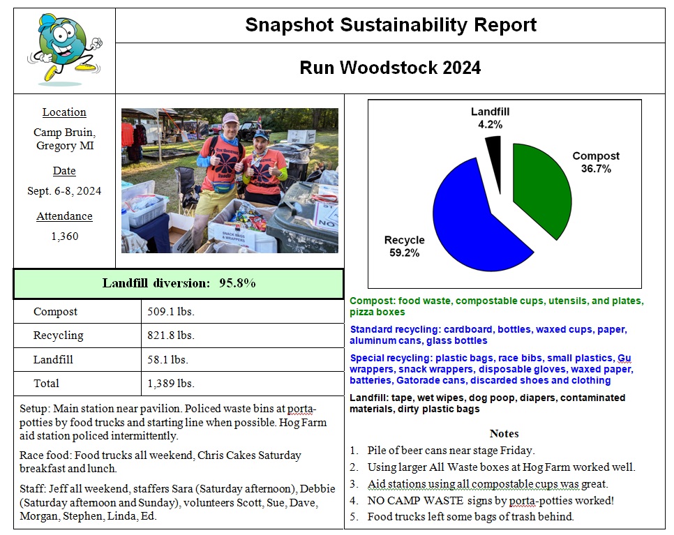 Another great weekend for Run Woodstock! With races ranging from 5K to 100 miles, plus camping, live music, yoga, tie-dye, good food, and good vibes, there’s a way for everyone to get in touch with their inner hippie. And how could you hold such an event without making it sustainable?