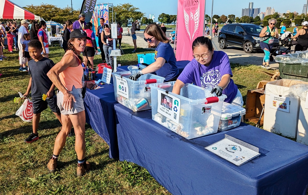 The Green Team set up in the finish area near the food tents. In addition, we put unstaffed All Waste boxes by the Water Monster, at another busy corner of the finish area, and on top of a trash can by the fountain. We also put a couple in the kitchen area. As those were highly visible, they filled quickly and needed to be swapped often.