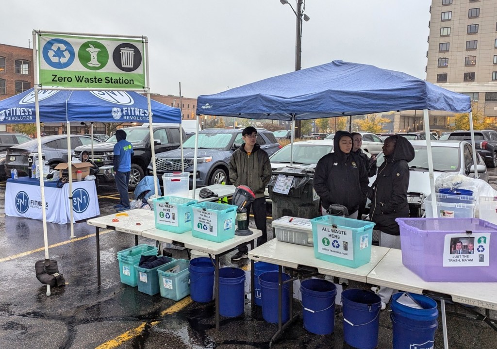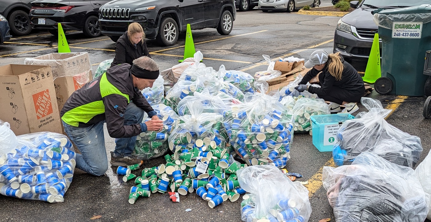 A wet, cold day in downtown Ann Arbor didn’t stop nearly 2,000 runners from showing up for our annual marathon, hosted by Epic Races. Whether they ran the full 26.2 or one of the shorter races, they all got a good run in, and ate and drank a lot afterward. So the Green Team had to be on its toes.