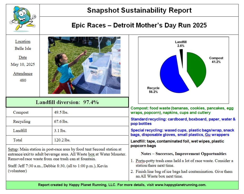 Nearly five hundred people showed up to run, celebrate motherhood, and (maybe) enjoy an adult beverage. And Happy Planet Running was there to make sure the event was as planet-friendly as possible.