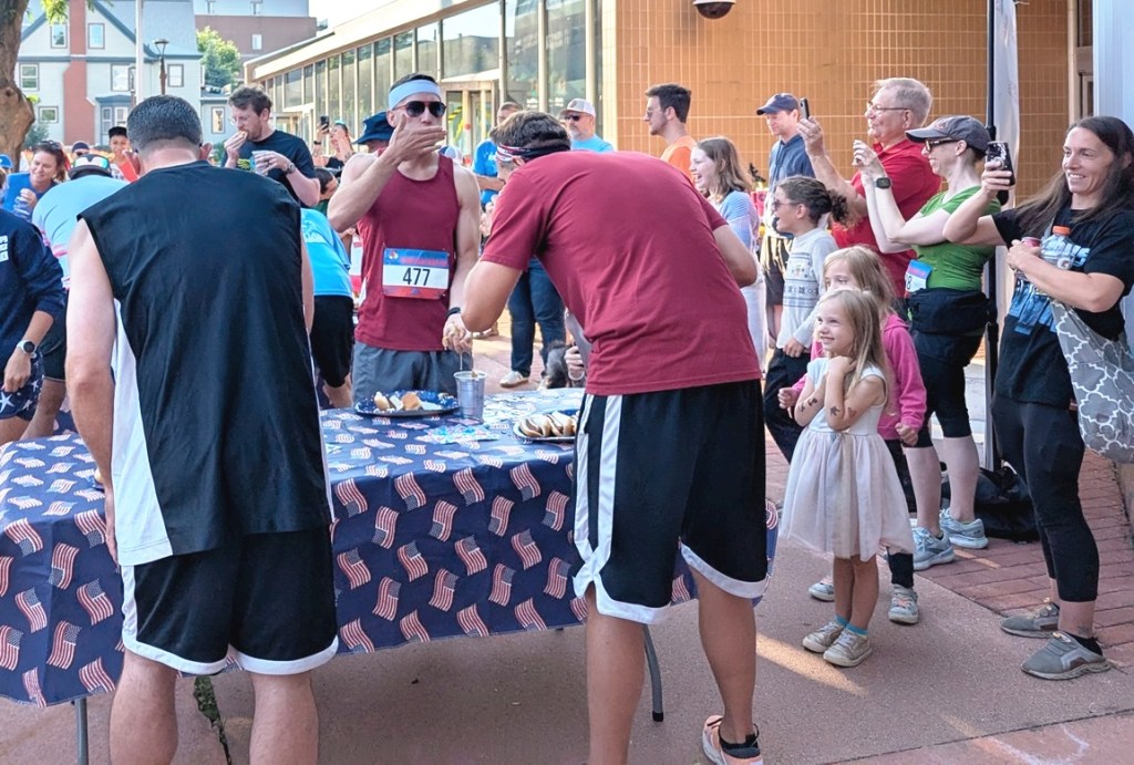 The annual Firecracker 5K is a fixture of the July 4th celebrations in downtown Ann Arbor, along with the parade immediately following the race. This year in addition to the hot dog contest division (eat four hot dogs in 76 seconds, then run the 5K), there was a flag-carrying division and for the first time, a rucking division, which is running or walking with a weighted backpack.