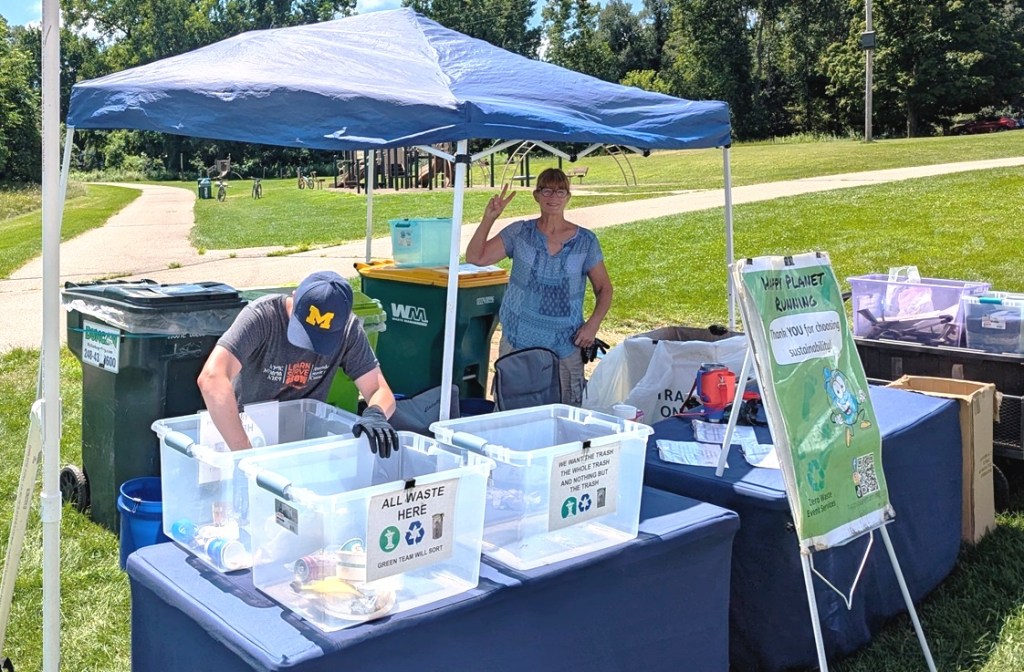 We set up the Zero Waste Station across from the food tent and put All Waste boxes at the finish line, adult beverage area, and in transition. Due to the nature of the race, finish times tend to spread out so we had more of a steady trickle of business throughout the day, rather than a big rush, a nice change from the big races we serve.