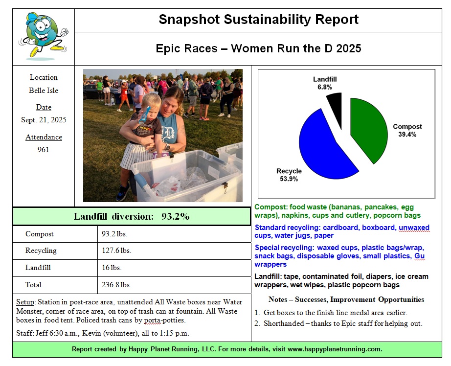 The Epic Races Women Run the D was back on Belle Isle last Sunday, and with special divisions for two and three-generation runners, supporting the idea that, “the family that runs together has fun together.” Attendance was up for the third straight year, and with perfect weather I expected a busy day at the Zero Waste stations. I was not disappointed.