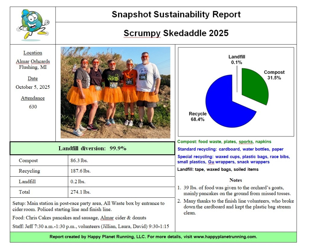 It’s fall once again, which means apple cider, donuts, pumpkins, and football. The RF Events Scrumpy Skedaddle at Almar Organic Orchards took care of the first three, with some running before football watching began. And with 5K, 10K, and 10-mile options, you could have all the running you wanted, followed by food and live music.