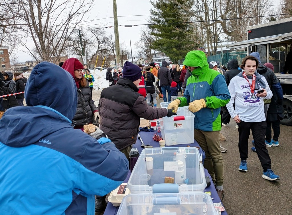 Food came from a BBQ truck, Raterman’s pretzels, and beer. All containers and utensils were compostable, which saved us a lot of effort from not having to rinse them, although we got a bunch of paper cups that needed rinsing later back at HPR HQ before they could be recycled. Other waste streams included cardboard, plastic water bottles, and a good number of hand warmers, which went to TerraCycle. We also wound up with quite a few leftover medals. The ribbons go to TerraCycle, the medals themselves to scrap metal.