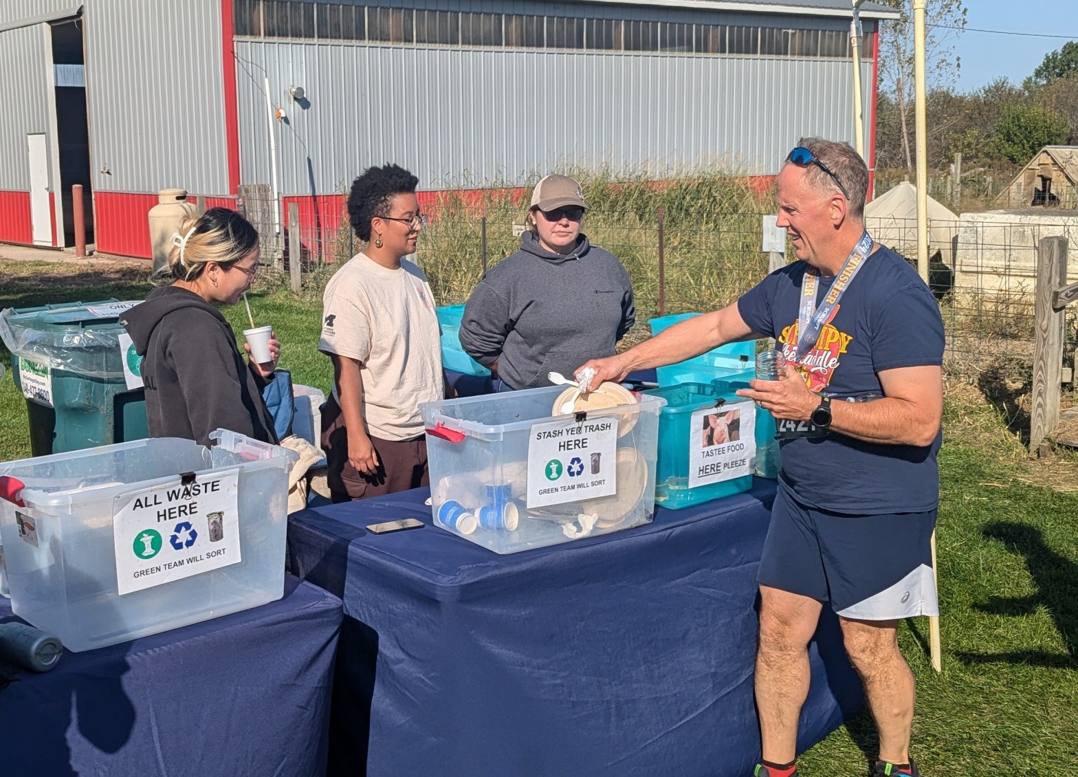 “Food waste in the green bins, everything else in the clear bins!” Such was the mantra of the Green Team last Sunday at the Scrumpy Skedaddle at Almar Orchards. Why the separation? For the benefit of the orchard’s pigs, naturally. And they made sure the 25 pounds of uneaten pancakes did not go to waste!Continue reading “Pig Out! Scrumpy Skedaddle 2024 Sustainability Report”